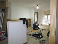 現在細かい仕上げの段階に入っております。 これは(下左側)掘りごたつの設置風景です。 洋室の中に畳コーナーを設け掘りごたつを入れます。