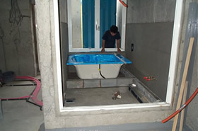 | 地階壁の内壁のスマートフォーム取り付け中。 |